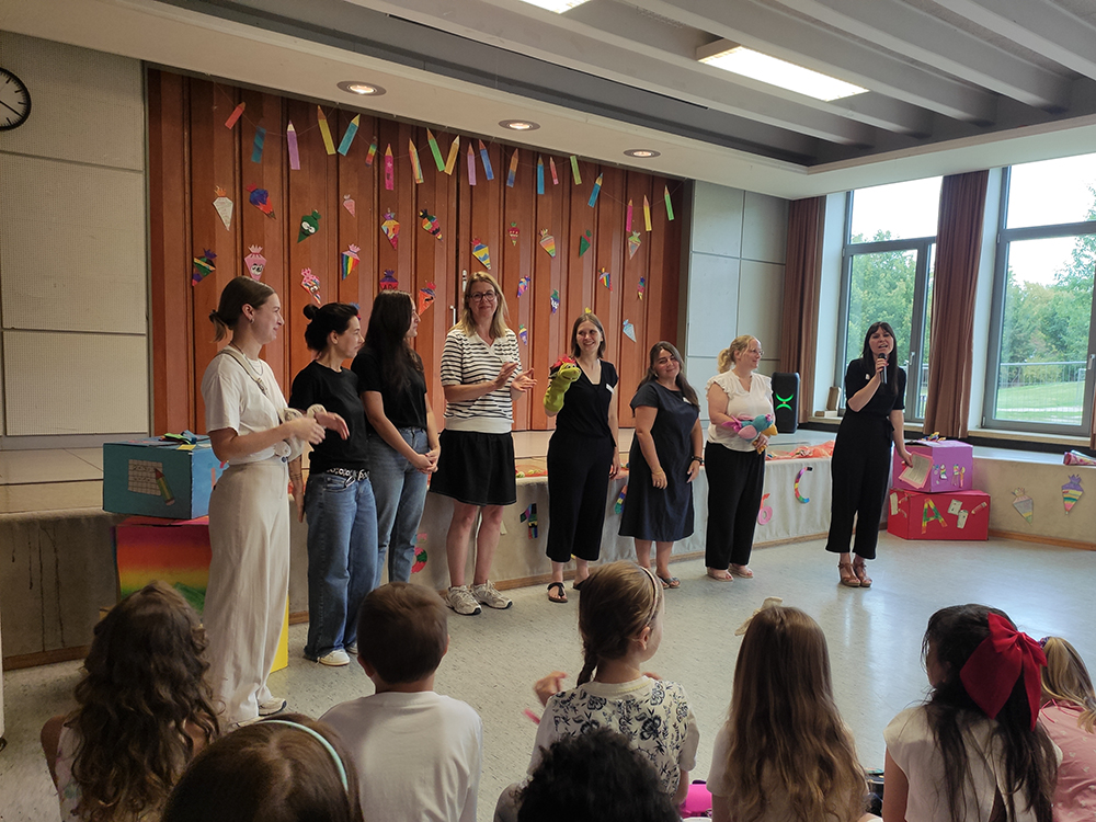 In der Turnhalle finden für alle Klassen zwei Schulversammlungen pro Schuljahr statt. Von den Schüler*innen werden Gedichte vorgetragen, Lieder gesungen, Tänze, kleine Theaterstücke oder auch Zirkusvorstellungen auf der Bühne aufgeführt. Zu Beginn wird das Schullied und für die Geburtstagskinder ein Geburtstagslied gesungen. Eltern sind als Zuschauer herzlich willkommen.